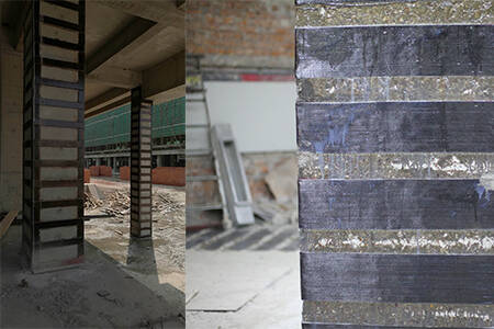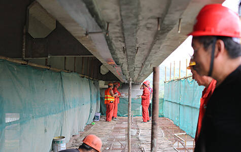 1.Preparatory work 2.Treat ment of surface 3.Primer and leveling construction 4.Externally bonded carbon fiber reinfroced polymer(CFRP)​ 5.Curing and protectiion 6.Recover work